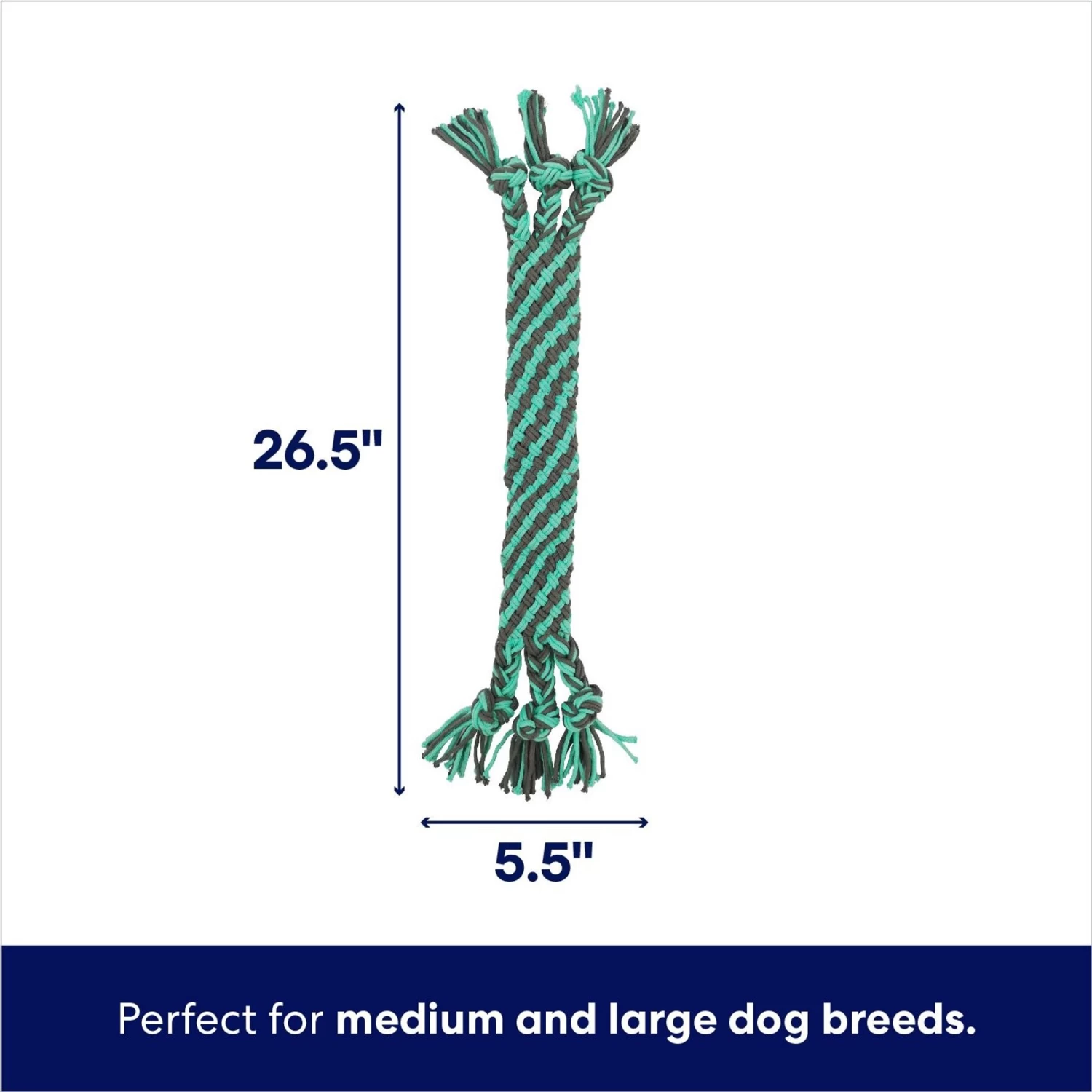 Frisco Flat Teal & Gray Braided Rope Squeaky Fetch Dog Toy