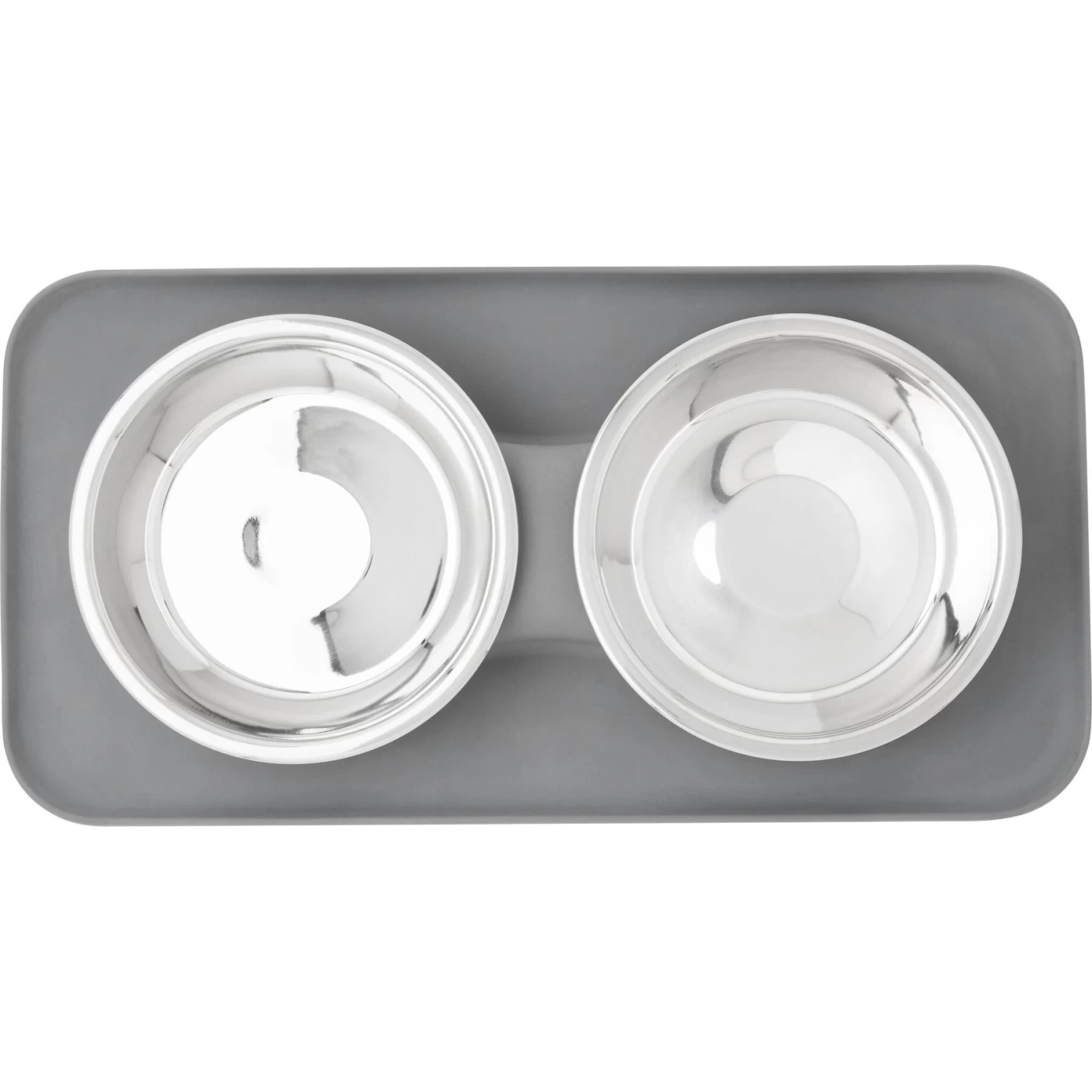 - Includes two durable, stainless steel bowls that are dishwasher safe.
