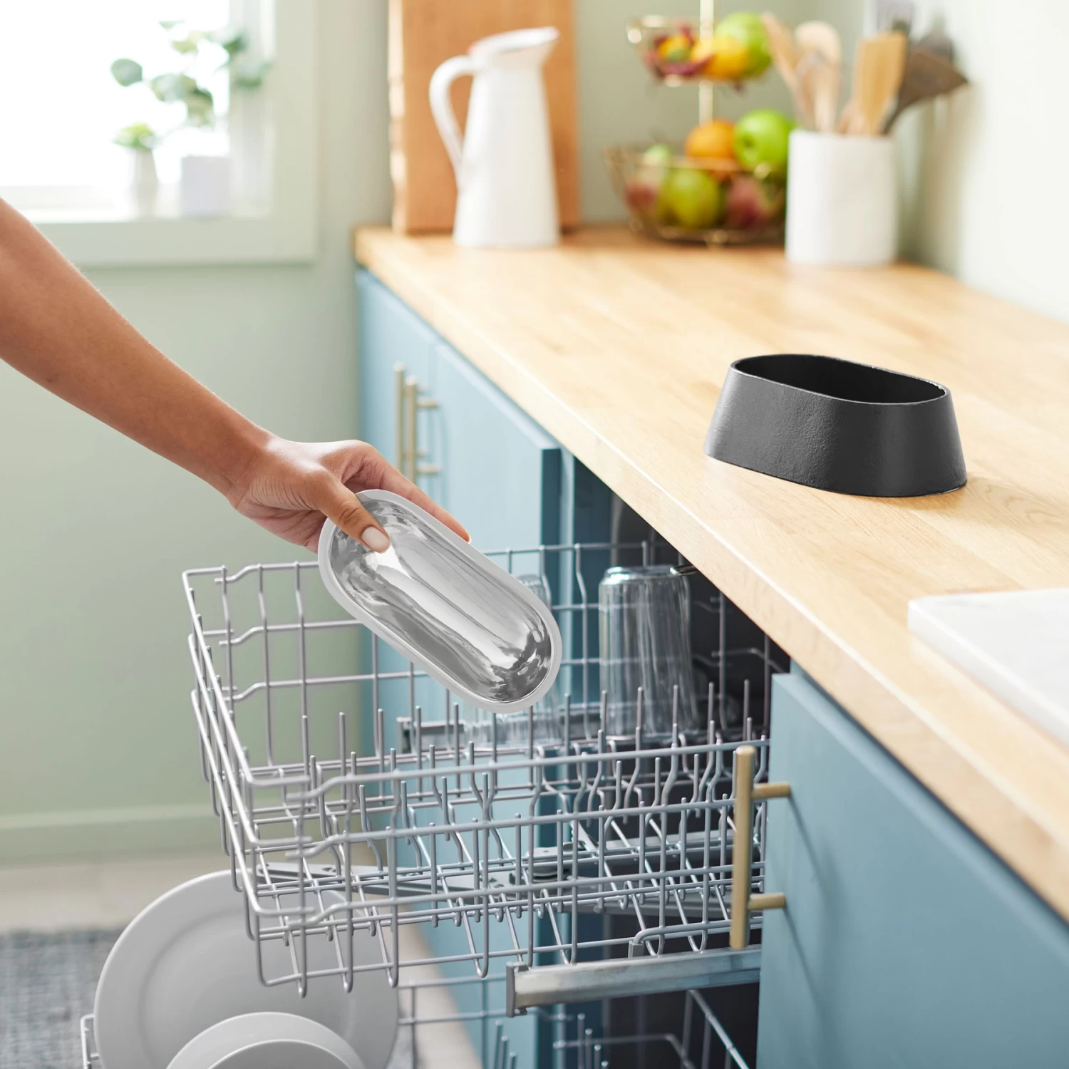 - The stainless-steel design means that you can toss this bowl in the dishwasher for fast and easy cleaning.