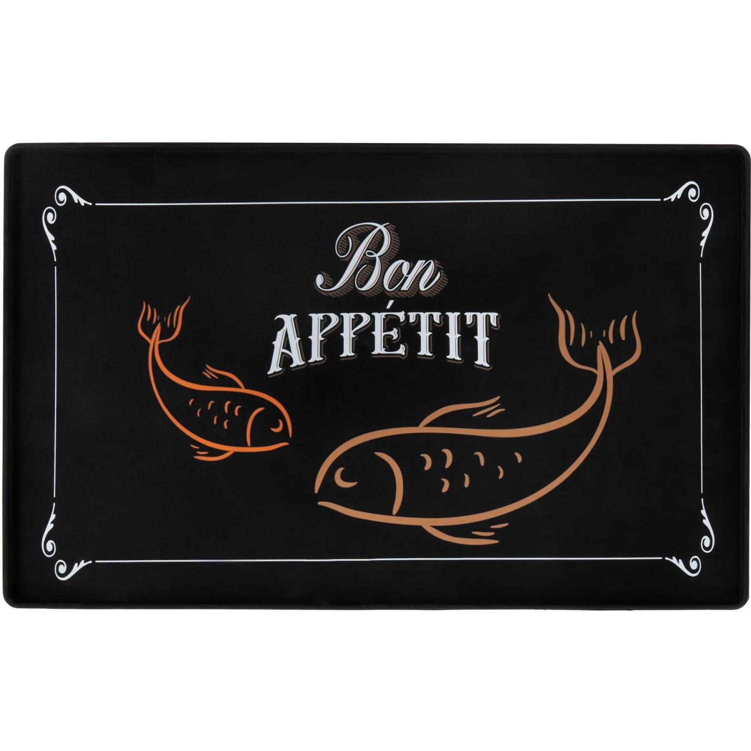 Frisco Silicone Fish Print Dog & Cat Food Mat, Black