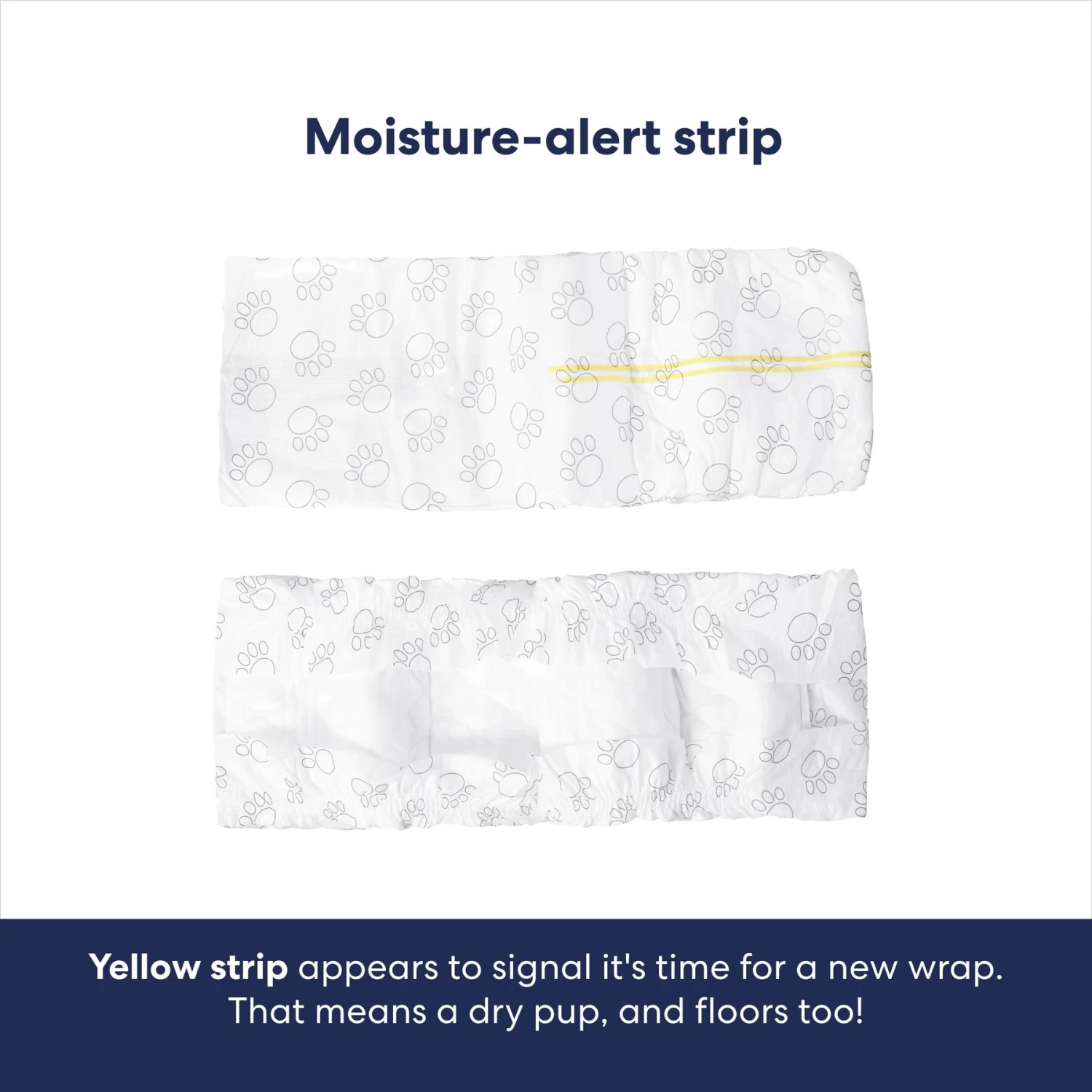 - The moisture-locking technology turns liquids into gel on contact, and the moisture-alert strip changes colors when it’s time for a new diaper, so your pup and your floor are always dry.